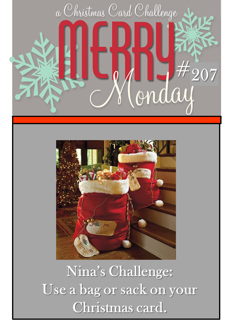 Hi everyone - Nina here, I am the hostess this week and the challenge is to use a bag or sack on your Christmas card. We can't wait to see what wonderful cards you create.